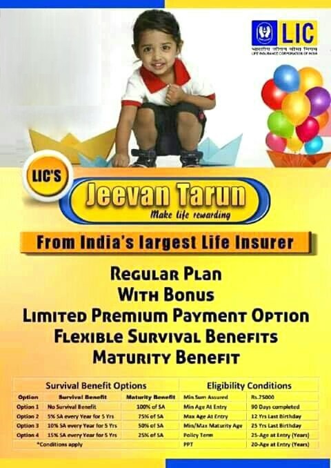 LIC’s Jeevan Tarun is a children’s plan that offers dual benefits of protection as well as savings